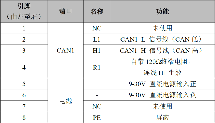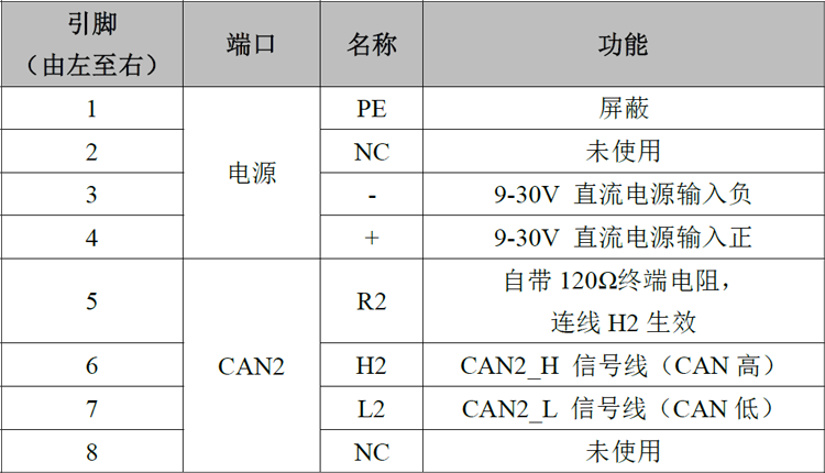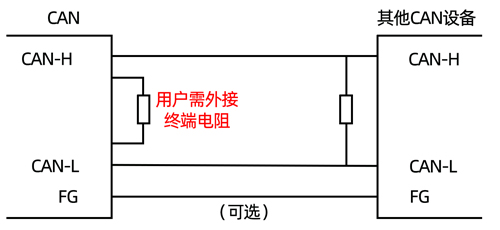 (5)CAN总线自带120Ω终端电阻,可通过连线接入;