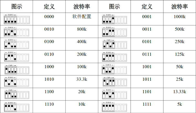 (4)CAN总线通讯波特率在5kps~1Mbps之间任意可编程;