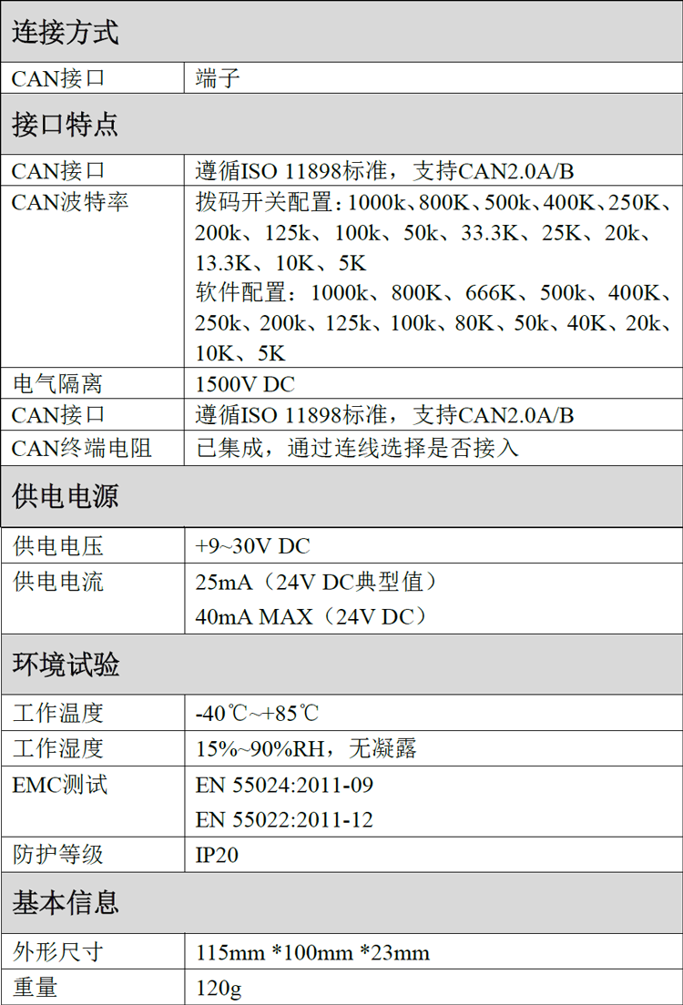 (6)CAN总线接口采用电气隔离,隔离模块绝缘电压:DC 1500V;