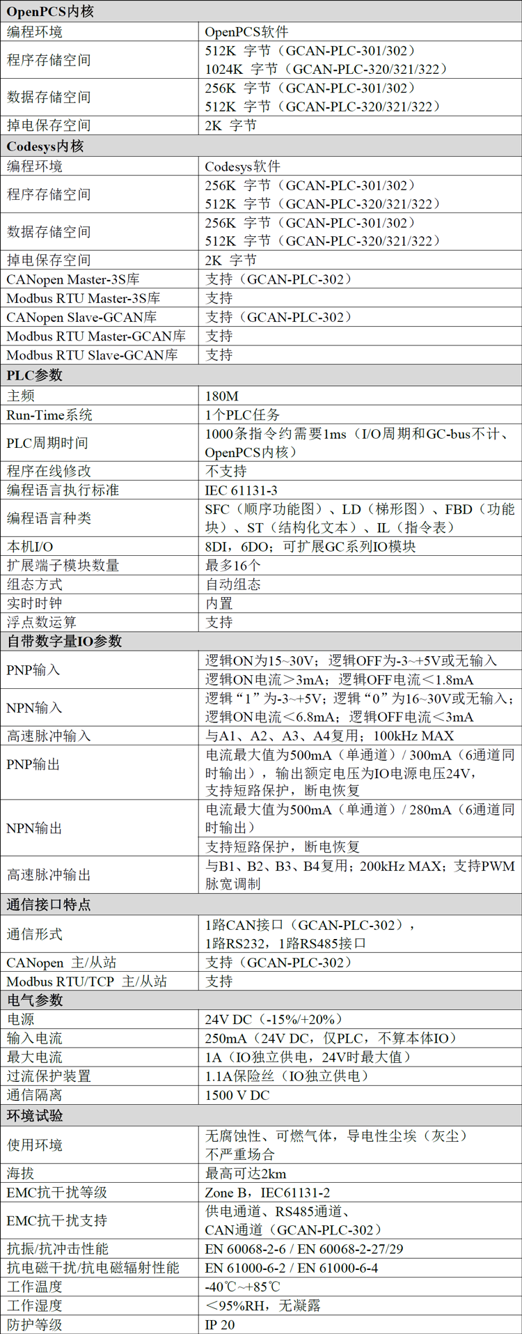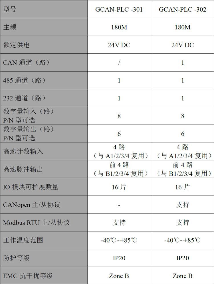 ● 支持CANopen协议主/从站功能(GCAN-PLC-302支持);