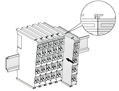GCAN-PLC-301/302最多可以连接16个GC系列IO模块。插入模块时,一定要沿着凹槽,在已有模块的右侧顺次插入,直到锁扣卡死并发出“咔”的一声。当您正确组装节点时,在端子模块之间不会存在明显的缝隙。如果有一个模块未被正确组装,整个IO系统将不会正常运行。