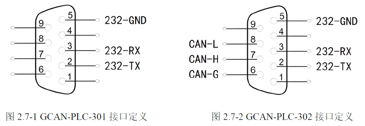 表2.1 GCAN-PLC-301/302的接口定义