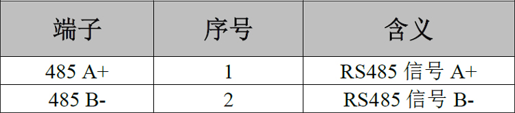 RS485接口的2P端子接口,引脚定义如下图及下表。
