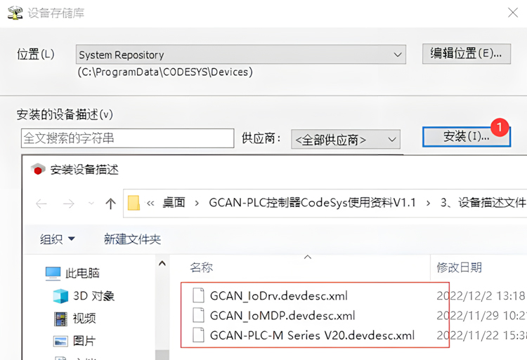 菜单工具栏->工具->设备存储库:安装设备描述文件: