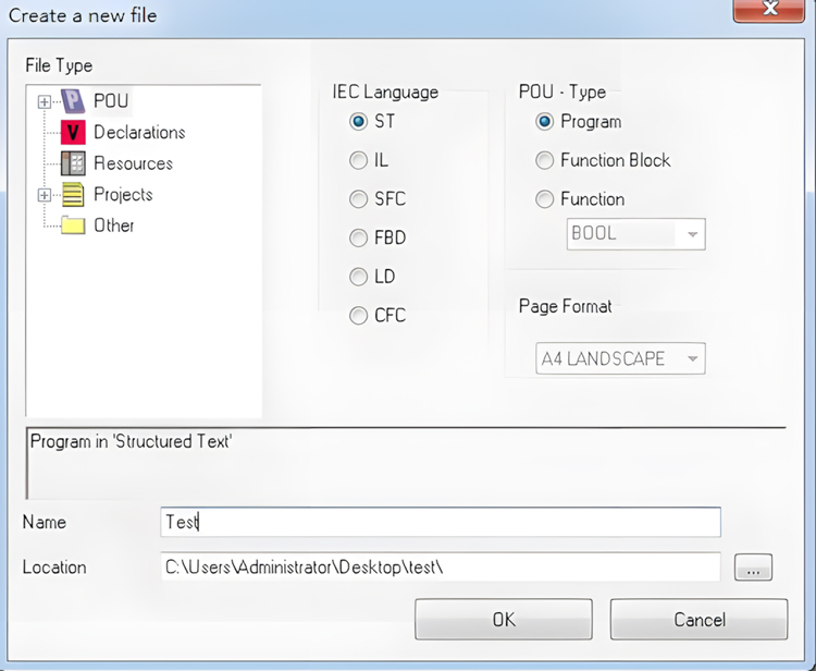为项目添加文件(例如:添加ST 语言编写的程序页ST,Program),如图5.3所示。