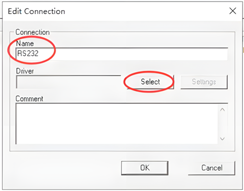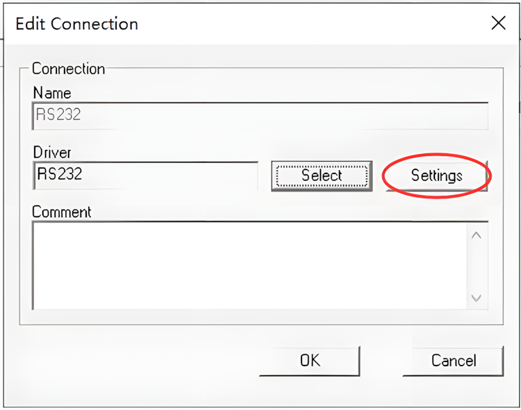 5、Driver 中会显示“RS232”字样,点击“Settings(设置)”按钮。