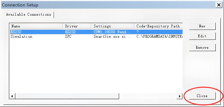 7、设置好后,返回Connection Setup(连接设置)界面,点击“Close(关闭)”。