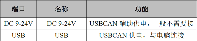 USBCAN-II C+接口卡具有即插即用的特点,因此用户可以使用PC机的USB接口直接向USBCAN-II C+接口卡供电;若USB供电不足,则需选用外部电源供电方式。