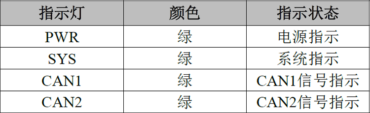 当CAN1或CAN2有数据收发时,对应的CAN1、CAN2指示灯会有闪烁。