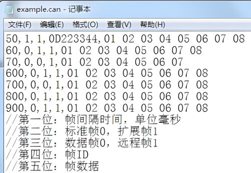 除以上基本功能外,软件还具有发送文件功能。文件发送分为普通文件发送及批处理文件发送。普通文件发送可以向总线上的节点发送文件,用户可以基于此功能开发CAN总线程序烧录软件;批处理文件发送可以将用户保存的批处理文件(.can)按保存时的时序及数据重新发送回CAN总线,批处理文件保存详见4.4。