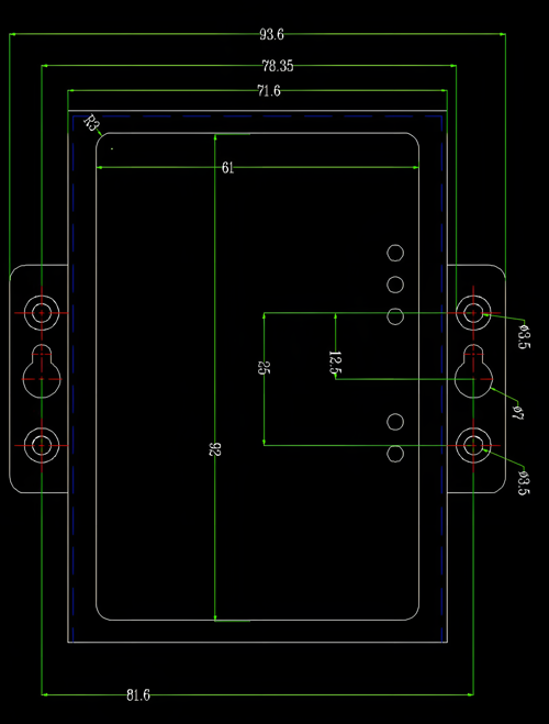 设备外形尺寸:(长,含接线端子)118mm*(宽)93mm*(高)22mm,其示意图如图2.1所示。
