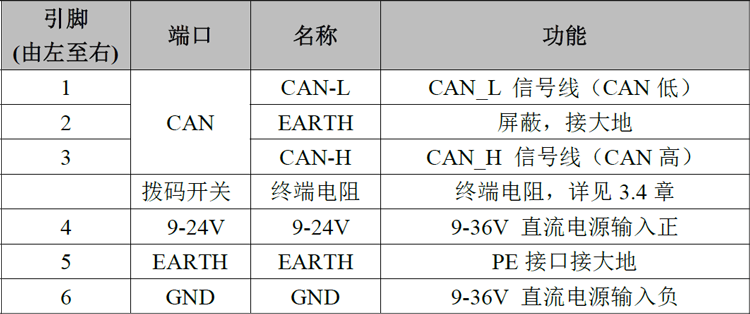 (3)CAN总线自带120Ω终端电阻,可通过拨码开关选择;