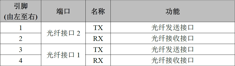 GCAN-208-2C模块光纤接口位置、接口定义如图2.6、表2.5所示。