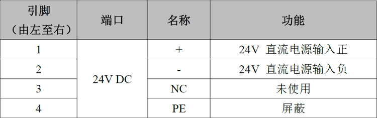 GCAN-205C模块的电源接口由一个4Pin插拔式接线端子引出,其接口定义如表2.1所示。