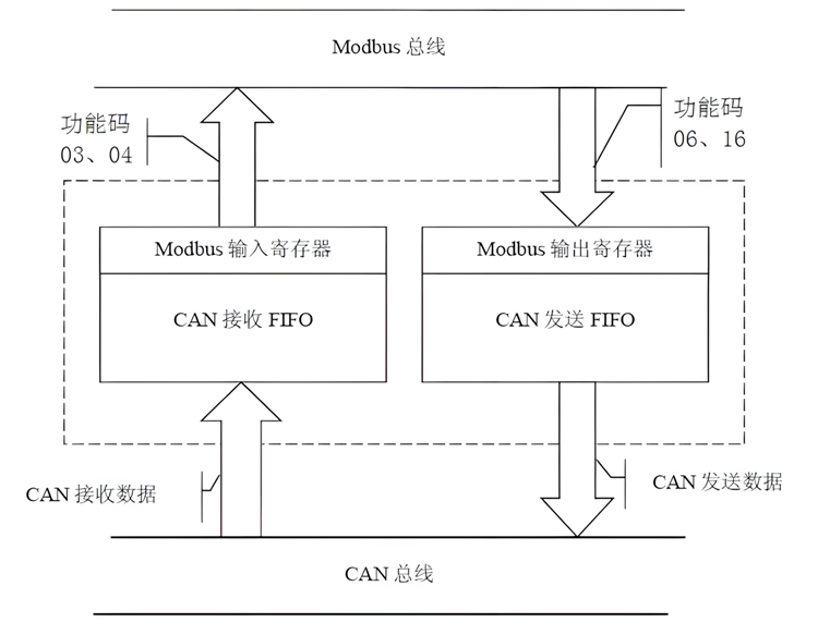数据触发模式(Trace):当有Modbus主机用06指令写Modbus相应地址数据时,如果数据发生改变,那么触发相应的CAN帧数据发送;