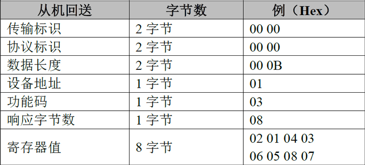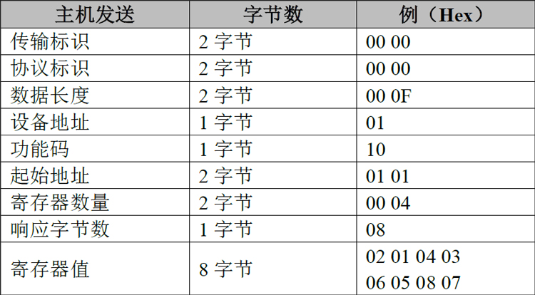 例如:Modbus寄存器首地址为0x100(十进制为256,此值为出厂预设值),功能码为16(10H),CAN为标准帧,帧ID为0x201,CAN帧数据为0x01,0x02,0x03,0x04,0x05,0x06,0x07,0x08。