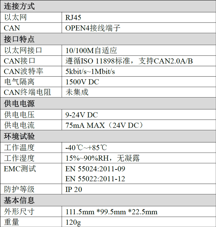 (5)CAN总线接口采用电气隔离,隔离模块绝缘电压:1500V DC;